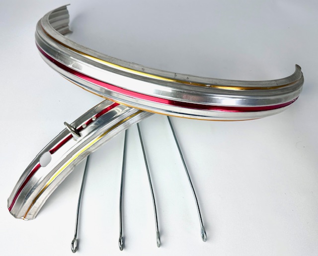 Vintage mudguard set 16 inch silver, red and gold lined