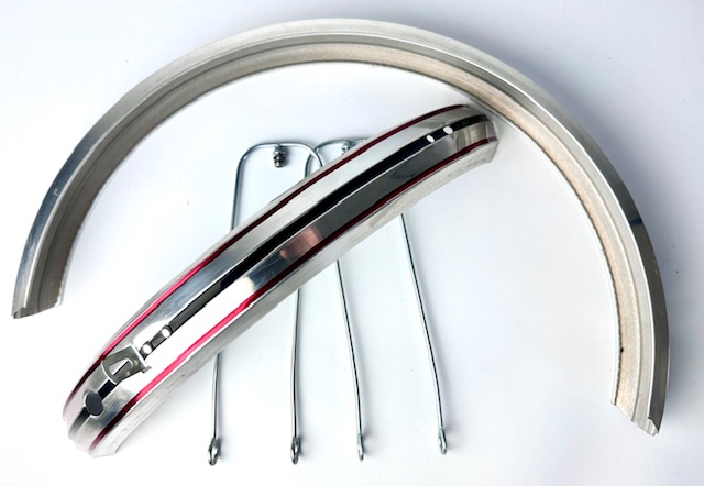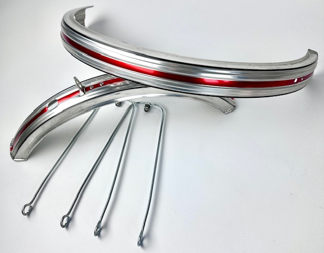 Vintage mudguard set 16 inch silver, red and black lined